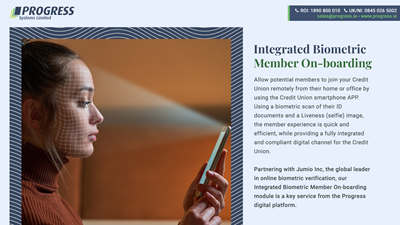 Progress have partnered with Jumio who are the global leader in digital biometric ID verification and this API partnership combined with our knowledge of Credit Unions, allows Progress offer the most secure, convenient and effective digital member onboarding on the market.